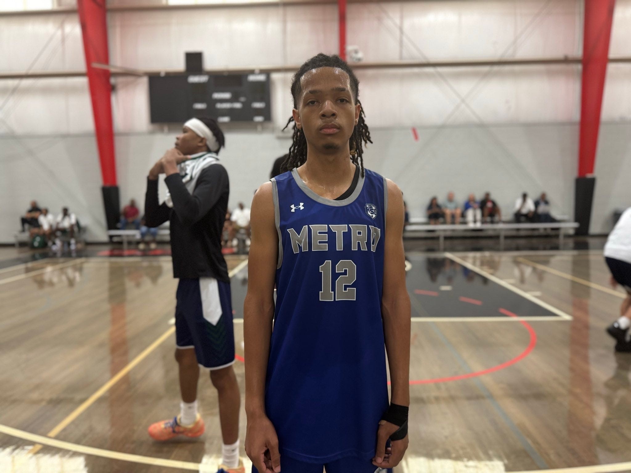 Bryce Kidd | North Metro Elite | 2028: 6’2” W Bryce Kidd was a consistent and impressive presence for North Metro Elite throughout the game. He made the necessary hustle plays, stayed active, and finished well around the basket. Kidd has a strong ability to get downhill with limited dribbles, effectively using his length and body angles to score over and around defenders. He also knocked down several mid-range shots, showcasing a smooth, high release point that makes his jumper difficult to contest and adds another dimension to his offensive game.